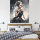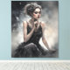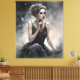 Transform your space with this captivating oversized gallery-wrapped canvas print featuring a stunning digital portrait of a passionate female singer. Clad in an elegant sparkling black gown, she grips the microphone with intense emotion, surrounded by ethereal smoke, floating shards, and dramatic spotlighting that evokes raw power and mystery.