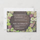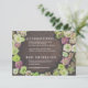 Customize this wedding invitation insert to give guest additional information. Shown with wedding website and hotel block information. Crisp white text on a dark wood background, surrounded by a ring of live blooms make this card a standout.