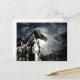 A beautiful cemetery scene with a gothic crypt and a dark dramatic sky on a post card. Pretty gothic style.