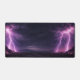 This Dramatic Lightning Storm Desert Horizon Desk Mat features a split-horizon design with intense purple and pink lightning strikes on the far left and right. Perfect for gaming rooms, storm chaser gifts, or dramatic dark workspace decor. This ultra-wide desk pad leaves a clean center for your keyboard while keeping the electric aesthetic visible.