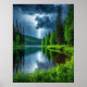 Dramatic Lightning Strikes Over a Serene Forest Poster