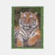 Let this Dramatic tiger Portrait warm your tootsies on this lovely fleece blanket. Lovely image of a fierce tiger resting presented on a green background.