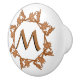 Image of an angled "wrought iron" bracket replicated 8 times to form a circle of leaves, with branches forming a central octagon. Image is shades of brown on a light yellow/green background. Personalize with your initial, that will show with drop shadow.