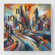 Drawing Abstract Modern Buildings Cityscape Square Wall Clock
