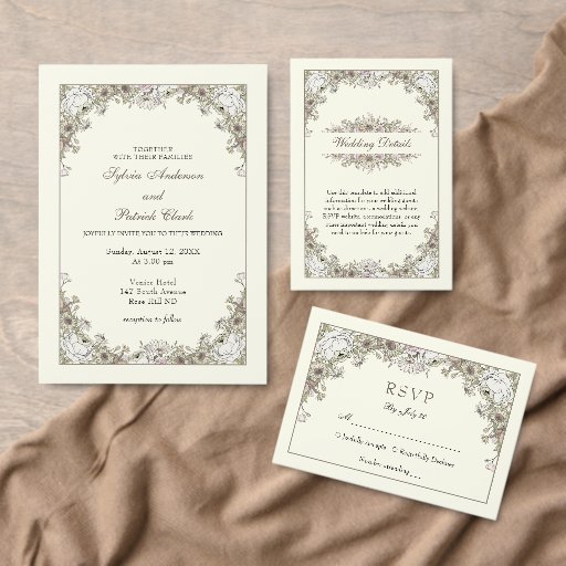 Drawing flowers ivory romantic wedding Designed by Brankica B