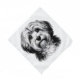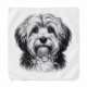 Black and white drawing of a Havanese Dog. Round eyes, wet nose and fluffy curls all over. Exactly how you would imagine a friendly little doggo.