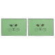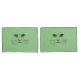 These pillowcases are green with a drawing in black of a cat face with long whiskers and bright green eyes on the front and back.