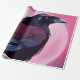 Drawing of a black raven on neon pink wrapping paper