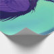 Drawing of a purple black orange raven on neon blue green turquoise background