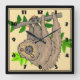 Drawing of a Sloth Hanging Upside Down Square Wall Clock