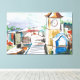 This canvas print displays a far off view looking over a small village town with buildings, trees and various abstract colors with an acrylic painting like style and hand drawing theme in this oil paint like style and theme. Our prints are printed with the highest resolution on cotton-poly archival paper, for a long-lasting fade resistant print measures. This print will make for the perfect addition to brighten up any home or office.