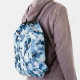 This drawstring backpack is shown with a multi blue color camo print.