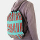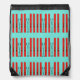 Drawstring backpack with red snow skis on blue background. Great for taking with you while hitting the slopes.