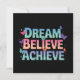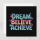 Nurture a brighter mindset with this uplifting "Dream, Believe, Achieve" greeting card featuring whimsical, colorful butterflies and motivational lettering. This cheerful artwork encourages mindfulness, self-love, and personal growth, making it a perfect gift or personal reminder to stay positive and spread good vibes. This butterfly-inspired design brings beauty and encouragement to everyday life.