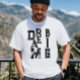 This Simple minimalist Typography text based design with black ink letters, featuring a cool modern inspiring saying and motivational quote Dream big, displayed in a cool aesthetic styleover a classic white t-shirt for men and women.