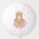 Birthday girl balloon features pink glitter, starry dream big little one with hearts typography/customizable name, and a cute sleepy brown bear wearing a crown sitting on a cloud.