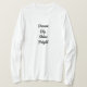 I love this shirt. I had written to the artist asking her if this picture was available on a shirt, and she wrote me back telling me where I could find the shirt. These shirts can be custom made to have a different saying. I loved this saying and went with it. The artist wrote me back later to tell me that she had seen my order go through. How's that for service? Pretty special. It's just as displayed. Perfect!