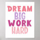 The "Dream Big Work Hard" wall art affirmation piece for kids is a perfect addition to any child's room. This piece encourages kids to dream big and work hard to achieve their goals. The colorful and vibrant design features inspirational words that will motivate children to reach for the stars and never give up on their dreams. The artwork serves as a daily reminder for kids to stay focused on their aspirations, no matter how big or small they may be. Whether it's aiming to become a scientist, an artist, or an athlete, this piece will inspire children to work hard and never give up on their dreams. Hang it in a prominent place in your child's room, and watch them light up with excitement every time they see it. This affirmation piece will not only inspire kids to dream big but also to take the necessary steps to make those dreams a reality.