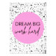 This powerful poster with the inscription 'Dream Big, Work Hard' is the ideal complement for any room that needs motivation and inspiration. Perfect for the home office, the workplace or your bedroom - remind you every day to dream big and work hard to achieve your goals. A must-have for all those who pursue ambitious dreams!