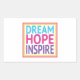 Elegant design in happy colors featuring the words of widsom: Dream, Hope and Inspire.