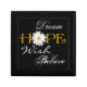 This large black, white, and yellow trinket box with the inspirational words dream, hope, wish, and believe on it has a large white shasta daisy flower head as the "o" in Hope can be used to store jewelry, mementos, or small keep sake items. The background color and the white words can be changed to whatever colors you want. You can also select different fonts for the white words by going into the designer area through orange customize button.