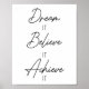 This design is composed of the phrase "Dream It Believe It Achieve It" which is a typography poster wall art that features a clean and modern design that is perfect for brightening up and adding some personality to any space. This lovely print can be personalized further by adding your own custom text, as well as changing the colors. This design has a modern feel and would look great in a modern apartment or loft space