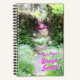 A fantasy forest as in a dream, in soft focus and stars, with several white wisps flying around. In the back is a threshold through an overgrown fallen tree. Above the portal is a glowing purple wisp sitting in the branches. Personalize this Dream Journal by adding your name!