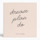 A simple binder with informal causal handwritten script typography quote "dream plan do" in black on a blush pink background. The text can easily be personalized for a design especially for you! The perfect inspirational gift or accessory for any purpose!