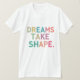 This t-shirt features the phrase "Dreams Take Shape" in a bold, vibrant, colorful font. The text is printed in multiple colors on a white t-shirt, making it a great way to express your aspirations and creativity. The design is eye-catching and inspiring, perfect for anyo