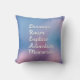 Inspiring Travel words - Discover, Roam, Explore, Adventure and Memories spelling out Dream on shimmery gradient background pillow cushion