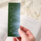 "Dream" in white lettering down the left side with wispy white dandelion fluff and forest green background bookmark is perfect form of expression to mark where you left off in the book you're reading. "Dream" in white lettering down the right side side with forest green background is also on the back. Perfect little gift for yourself, a friend or loved one who loves to read.