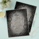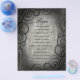 These invitations and other matching items have a gothic black and grey color scheme with a swirling border. "All that we see or seem is but a dream within a dream".