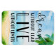 Watercolor tropical beach background with inspirational text overlay.