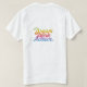 A vibrant t-shirt design featuring the words "Dream Work Achieve" in a playful, handwritten font. Each word is a different pastel color with a slight outline, giving it a vintage feel.