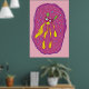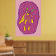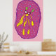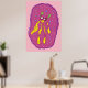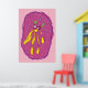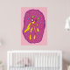 Dream swimmer cartoon creature in yellow and pink background color. Cute home decor, kids room wall art.