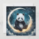 In a tranquil, starlit sky, a serene panda sits comfortably on the curve of a glowing crescent moon. The moon, luminous and soft, radiates a silvery light that bathes the panda in a celestial glow. Tiny, sparkling stars scatter across the indigo night, adding a magical twinkle to the scene. The panda gazes downwards, its posture peaceful, as if dreaming of cosmic wonders. Below, wispy clouds float gently, enhancing the dreamy ambiance. The composition blends whimsy and serenity, capturing the charm of the panda amidst the vastness of the night sky.