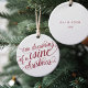 If the Christmas you're dreaming of is more of the pinot noir variety, give this little ornament a place of honor on your tree. Ceramic Christmas ornament in white features "I'm dreaming of a wine Christmas" in festive cranberry red calligraphy. Back is customizable with the year and your text of choice.