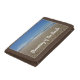 Dreaming of the beach? This trifold wallet features a photo of the blue Pacific Ocean, bright blue sky, and the warm brown sand. The beach landscape slopes at an angle toward the rolling waves. A few small puffy clouds dot the blue sky. "Dreaming of the Beach" can easily be customized if you desire.