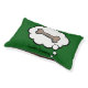 Dreaming of Bones Design Pet Bed with customizable background color and text.