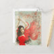 This postcard features a flamenco dancer dreaming of her hometown in Spain as she dances.