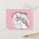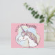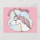 Whimsical hand drawn unicorn with "keep on dreaming" text on pink background