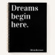 Dreams begin here | Modern white black Notebook