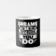 A motivational quote that says dreams don’t work unless you do. This design looks really effective on these Mug