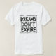 Never give up on your aspirations! This powerful and inspiring "Dreams Don't Expire" design is a potent reminder to keep chasing your goals. Featuring bold, distressed grunge brush stroke typography framed in a simple box, the message is perfect for dreamers, doers, and anyone who believes in the power of persistence. It's an ideal choice for those who embrace motivation, positivity, personal growth, or anyone needing a boost to keep pushing forward. This makes a great gift for friends, family, or anyone pursuing a big dream.
