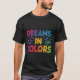 This vibrant t-shirt features the message "Dreams in Colors" in a stunning multicolor design. Each letter explodes with a different hue, creating a playful and optimistic look that reflects the boundless potential of your dreams. Whether you're a creative chaser or a dreamer at heart, this shirt is the perfect way to express your vibrant spirit and inspire those around you.