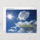 A Postcard with a photograph of puffy clouds and a sunstar or sunrays. Photographed in Southwest Florida.