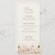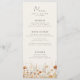 Dreamy autumn wedding menu featuring a delicate wildflower border in soft neutral tones. The design is elegant and romantic, creating a beautiful atmosphere for the celebration. The autumn-inspired color palette and floral details are perfect for a late summer or fall wedding and will surely set the tone for a memorable and festive celebration.