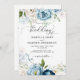 Dreamy Blue Navy Floral All In 1 QR Code Wedding Invitation