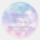 Dreamy and romantic bridal shower favor sticker featuring watercolor illustration of pink, purple, and blue sky with stars and clouds.