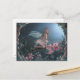 Fantasy card with a dreamy fairy sitting on a blossom covered branch.